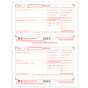 5222 Blank 2up W-2 with Instructions - 50 Pack